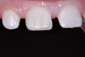 Broken Left Central (After) This was restored in one visit with tooth colored filling.